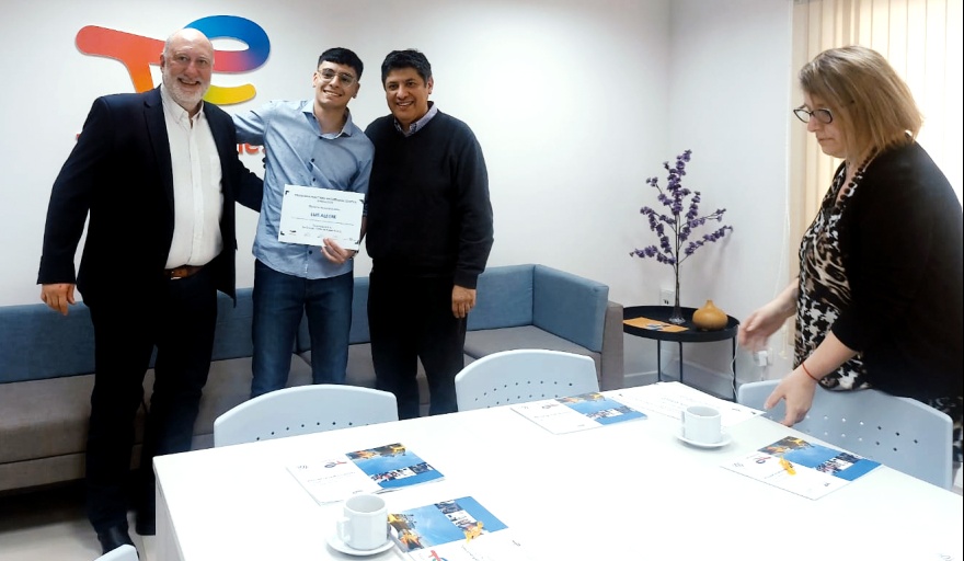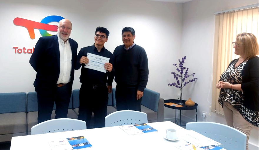 Posteriormente se entregaron los certificados que acreditan el cumplimiento del trayecto por parte de todos los alumnos participantes, en un evento del que participó el Rector, Eduardo Whiteman y el Gerente Regional de Distrito de Total Austral, Ing. Marcelo Reino.