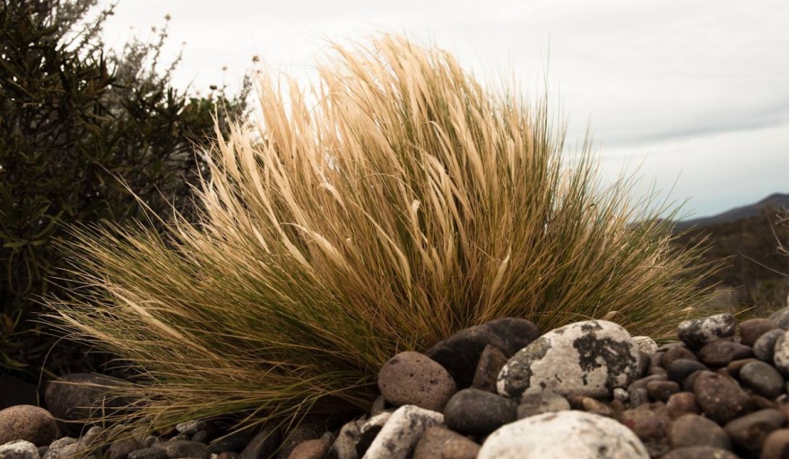 La primera disolución de esos sentidos la efectúa el hecho de que no hay algo así como “el” coirón: hay coirones. Coirones dulces, poa, llama, plumoso, blancos, amargos, etc. Y diremos que cada cual se erige como una llamarada distinta del incendio estático de miles de kilómetros cuadrados, porque esta disolución no implica el fin de la metáfora. Pero esa diversidad de coirones tiene que ver justamente con su condición mutante y peregrina, y con su virtud de colonizador exitoso a partir de su flexibilidad genética y no de su rígida identidad biológica. De hecho, la historia evolutiva del coirón tiene su origen hace millones de años, probablemente en el hemisferio norte, en plantas precursoras que se han diversificado hacia el sur, alcanzando más cantidad de pares de cromosomas en las regiones más distantes, lo que se relaciona con una gran poliploidía, mutaciones e hibridaciones para adaptarse a nuevos ambientes. La variabilidad genética y la plasticidad fenotípica permitieron a estas especies colonizar la inmensidad de la meseta patagónica y las laderas cordilleranas con toda su gama de hábitats diversos. Este nomadismo somático, marcado también por la coevolución con otras especies y su sustancia maleable, desmiente la idea de una esencia inmutable, de generación espontánea y autóctona que se le atribuye al coirón. Otra ficción de la novela de las esencias, la identidad y lo nativo.