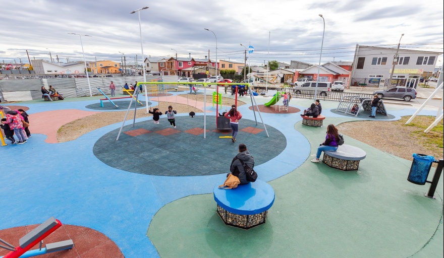 Río Grande.- La reconstrucción de la plaza del barrio 25 de Mayo era muy esperada por los vecinos y vecinas de la zona, ya que permitirá que las infancias y adolescencias puedan compartir y reunirse en un lugar en condiciones y realizar actividades al aire libre.