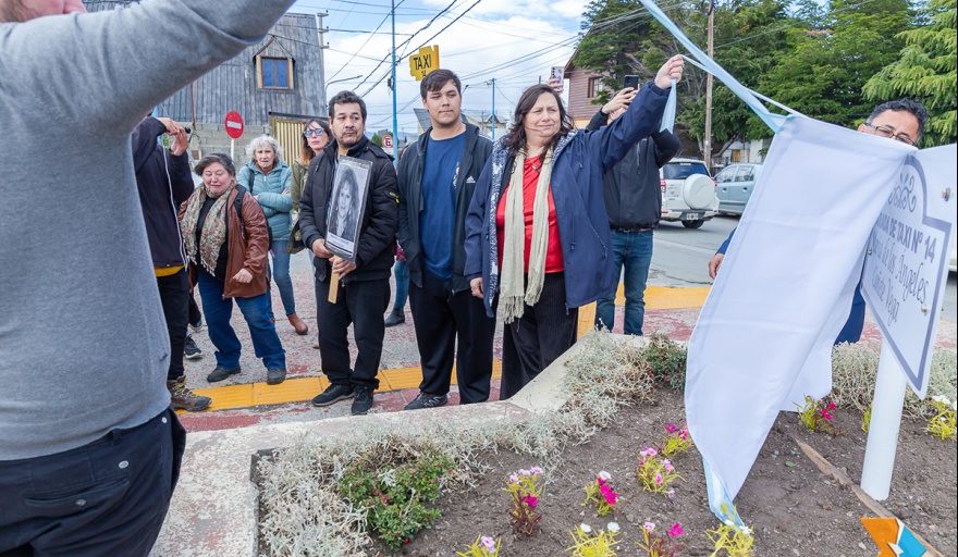 “La colocación de la cartelería es un homenaje a María de los Ángeles y también una forma de acompañar a sus familiares”, manifestó el secretario de Gobierno de la Municipalidad de Ushuaia, César Molina.
