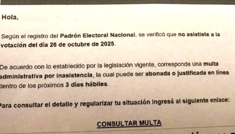 Ayer | No caer en la trampa Cuidado con el mail de la “multa por no votar”: es una estafa para robar tus datos